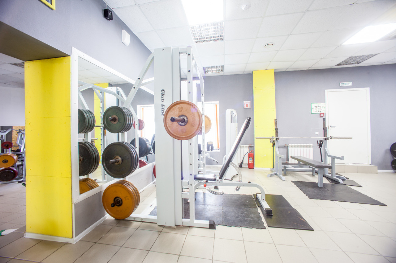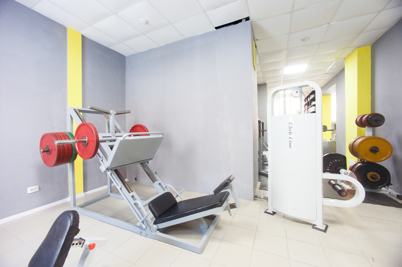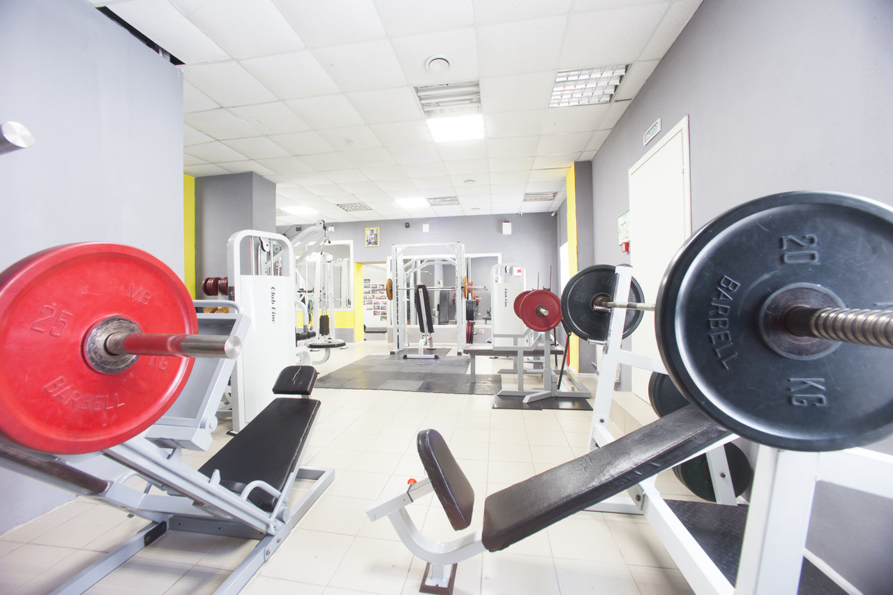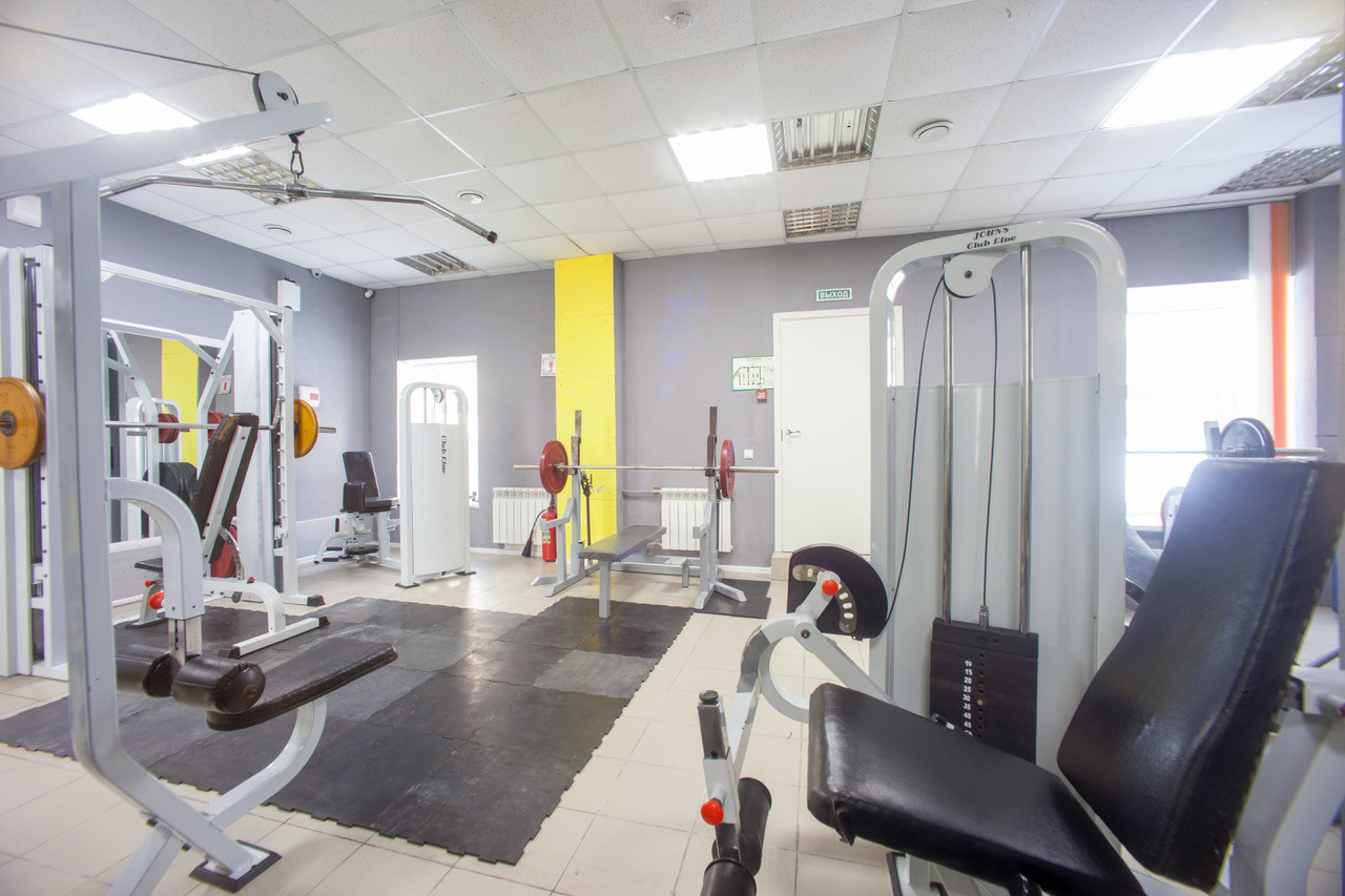Тренажерный зал "ISKRA_GYM", расположенный на первом этаже здания, имеет площадь 250 кв.м. и предназначен для занятий общей физической и силовой подготовкой.