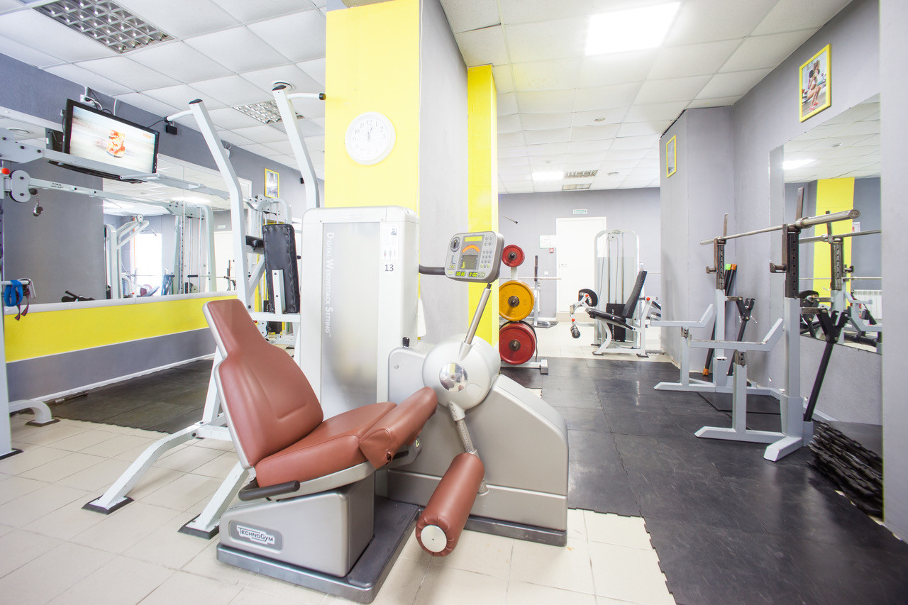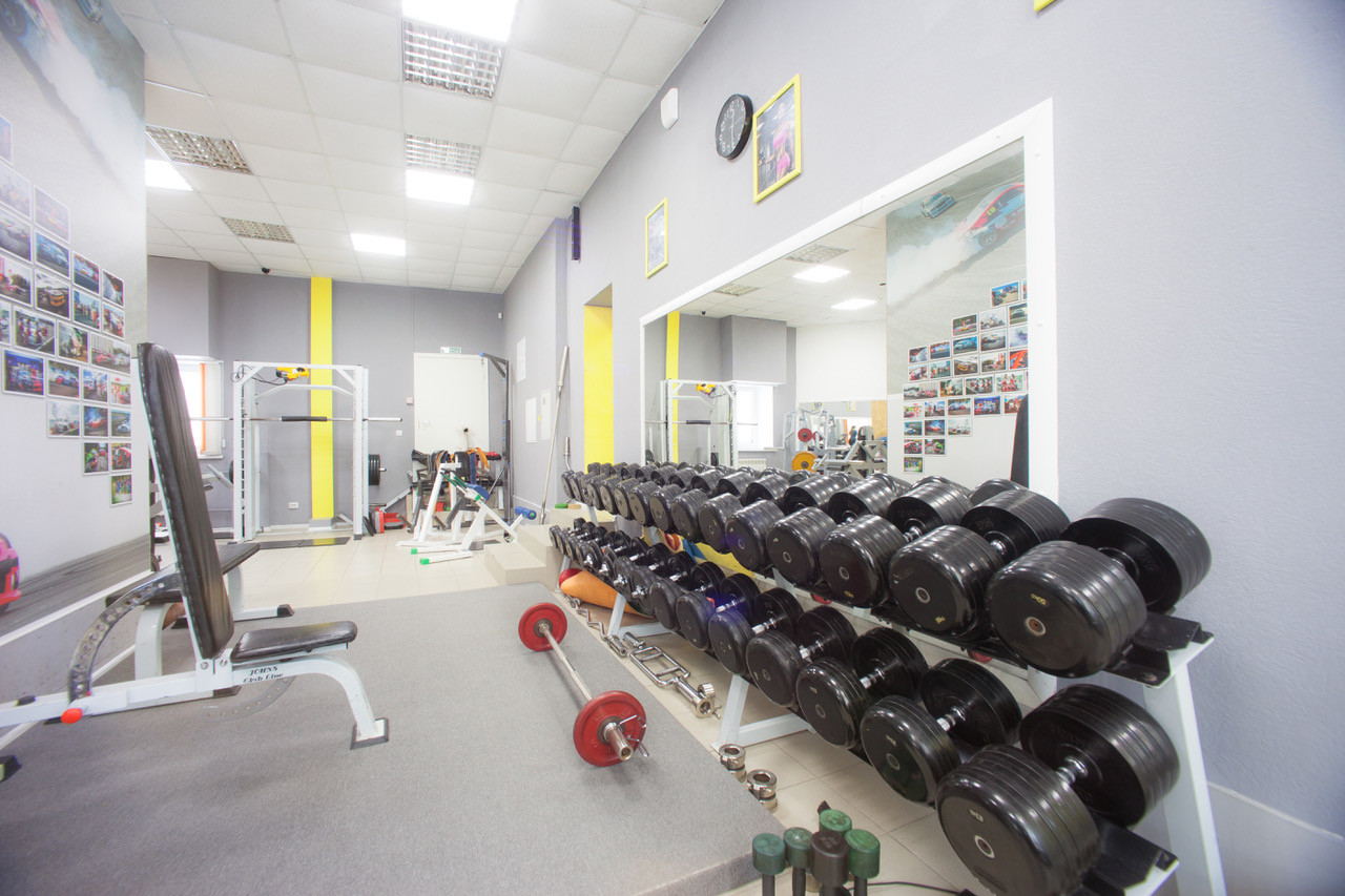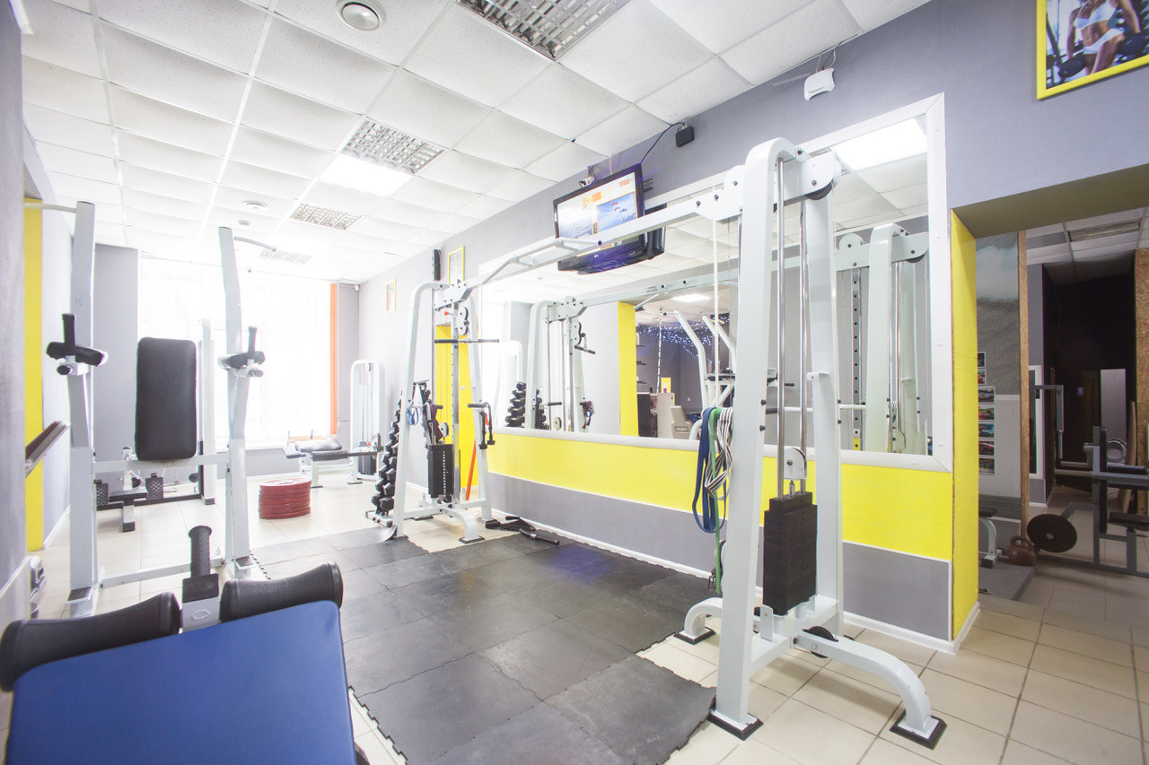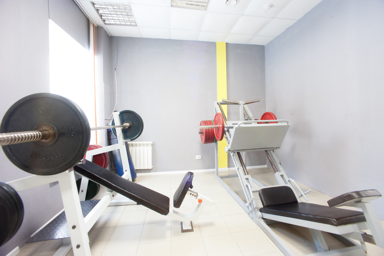 Тренажерный зал "ISKRA_GYM", расположенный на первом этаже здания, имеет площадь 250 кв.м. и предназначен для занятий общей физической и силовой подготовкой.