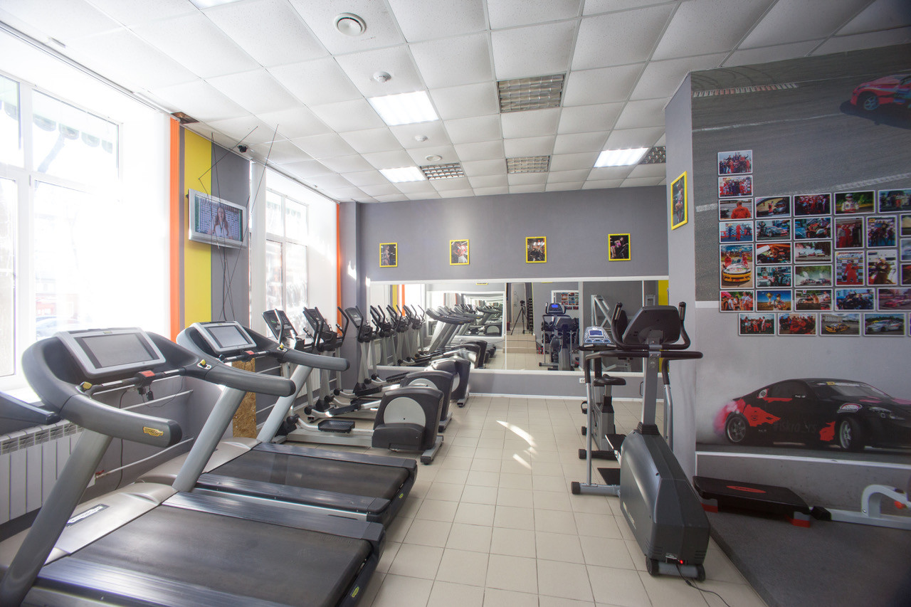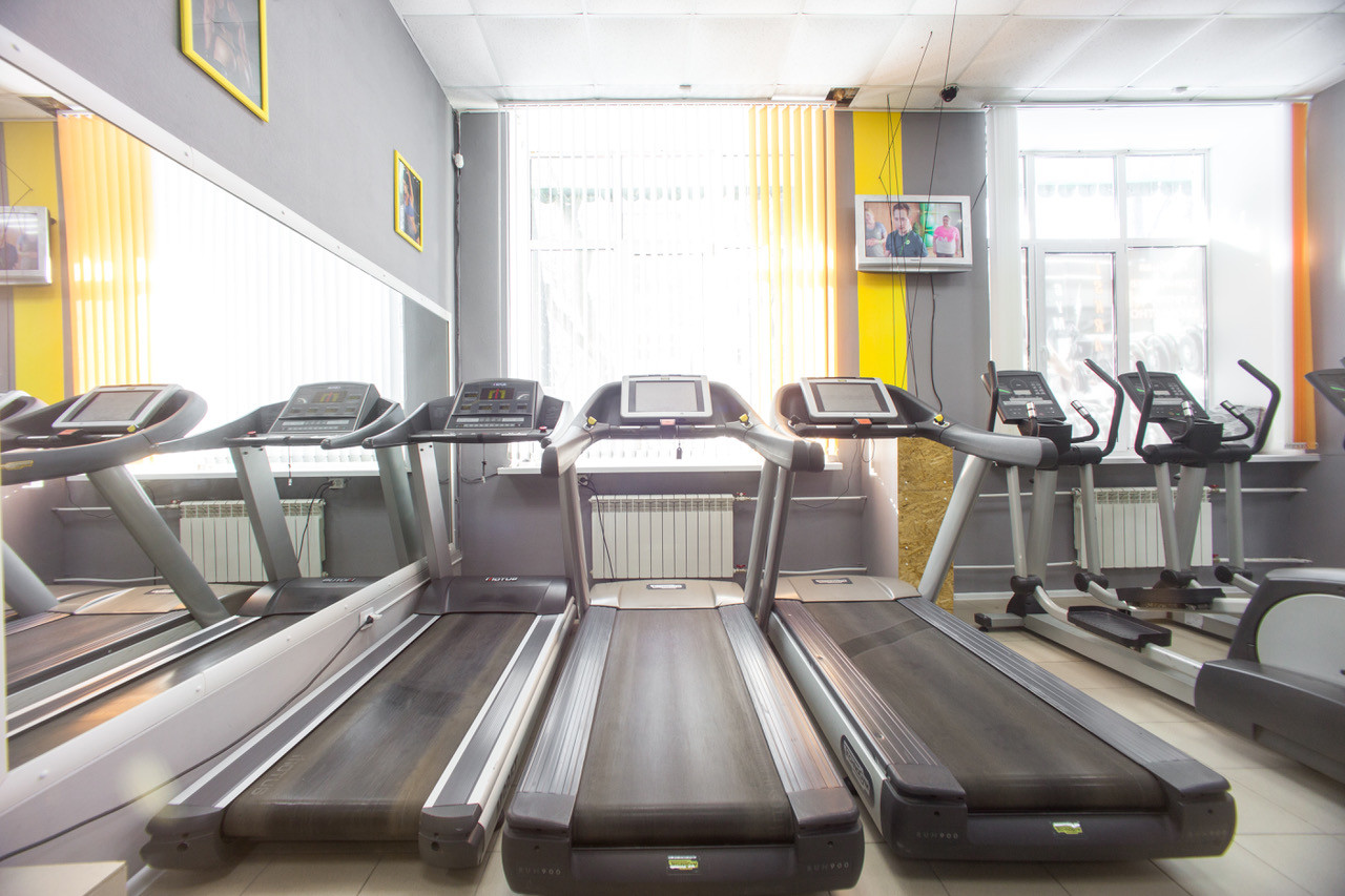 Кардио-зона тренажерного зала включает в себя беговые дорожки "TechnoGym" и "Motus". Эллиптический тренажеры "Степанов", велотренажера "Motus".